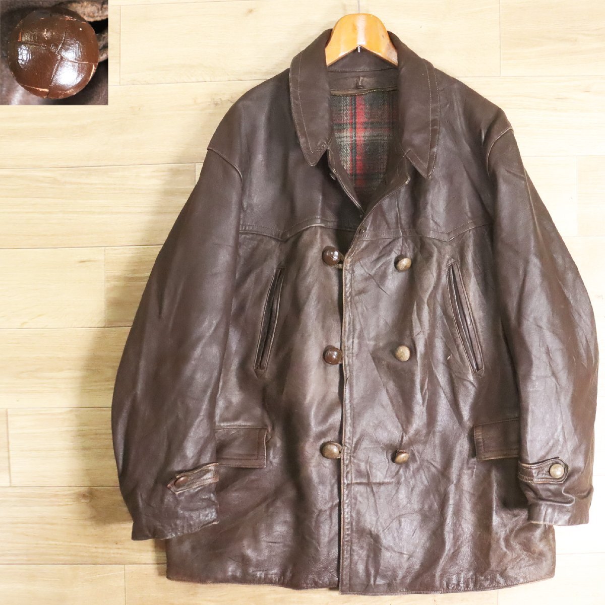 > &5R/Y6.10-3 50s ヴィンテージ フランス マッキーノコート 本革 ダブルブレスト レザーカーコート レザージャケット ビンテージ