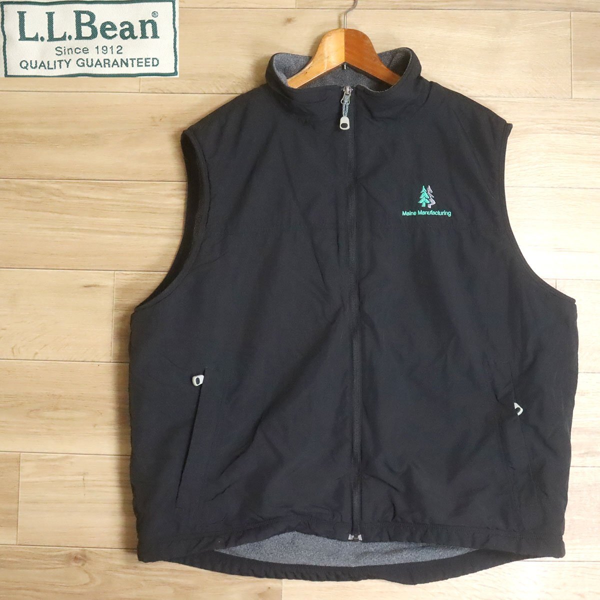 > =5K/R5.1-4 L.L.Bean エルエルビーン ナイロンベスト 裏地フリース ジップアップジャケット アウトドア 刺繍 メンズ XL