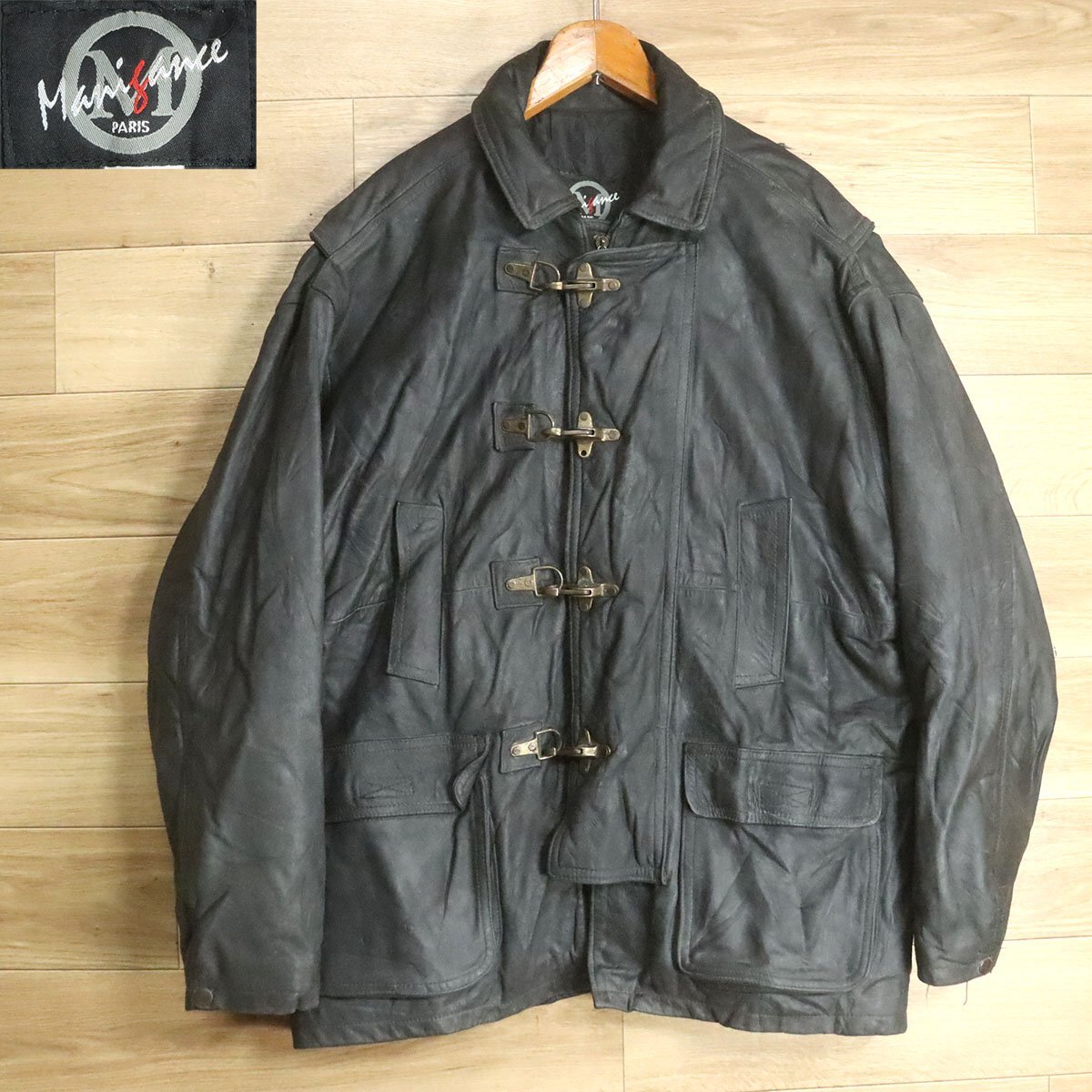 > *7K/S6.12-3 ユーロ古着 フランス製 Mani ance PARIS ファイヤーマンジャケット 本革 レザージャケット 革ジャン 皮ジャン 2