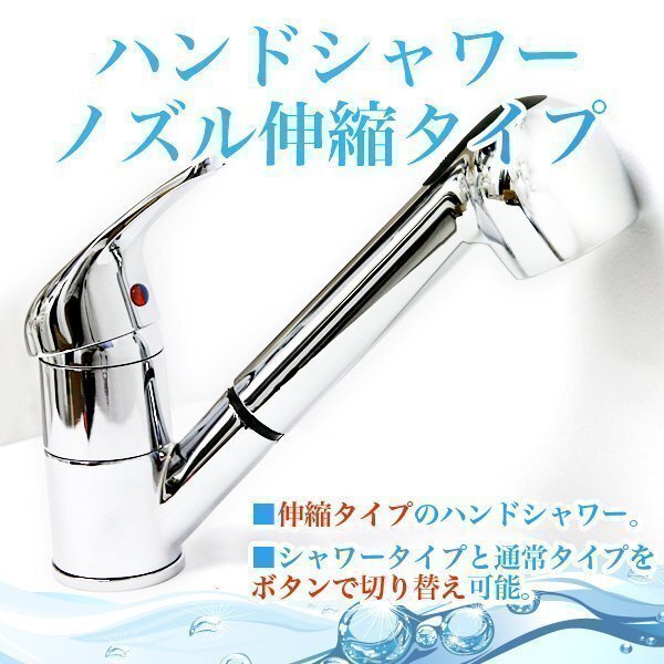 > ハンドシャワー ノズル伸縮 タイプ蛇口ホース付 混合水栓 取り付け シャワーヘッド シングルレバー 洗面用水栓 キッチン用水栓 洗面台蛇口