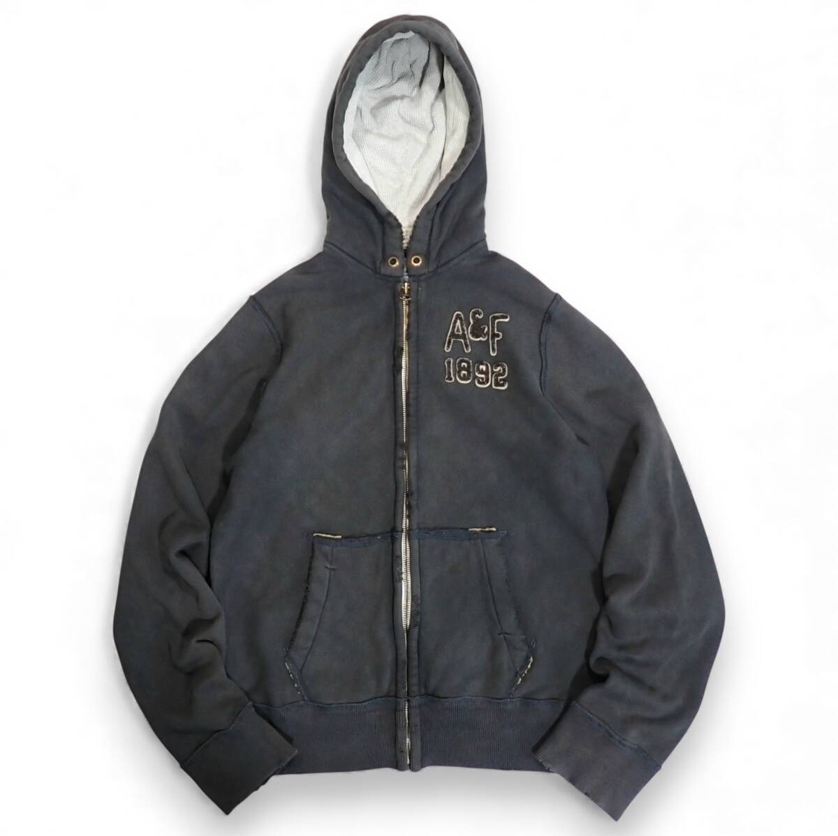 - Abercrombie & Fitch ヘビーウエイト スウェット パーカー M●Y2Kビンテージ加工 ダメージ加工 アバクロ A&F 厚手フーディ●洗濯済古着7182