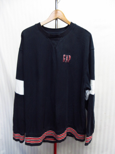 > GAP ギャップ スウェット メンズL XL相当 紺 ロゴ刺繍トレーナー V地ガゼット ビンテージ仕様スウェットトレーナー ジャージトップ11051