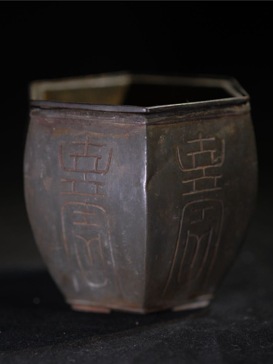 - 茶道具 古錫 建水 静明蕙制 製 時代物 唐物 中国古玩