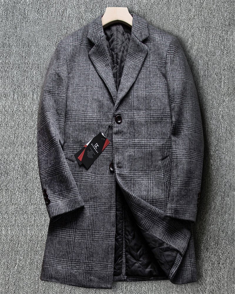 - 高級 DCKMANY 新品 ウール 中綿 ロングコート チェック柄 秋冬 厚手 防寒 メルトンコート メンズ 紳士 WOOL ジャケット 灰 D9988-L