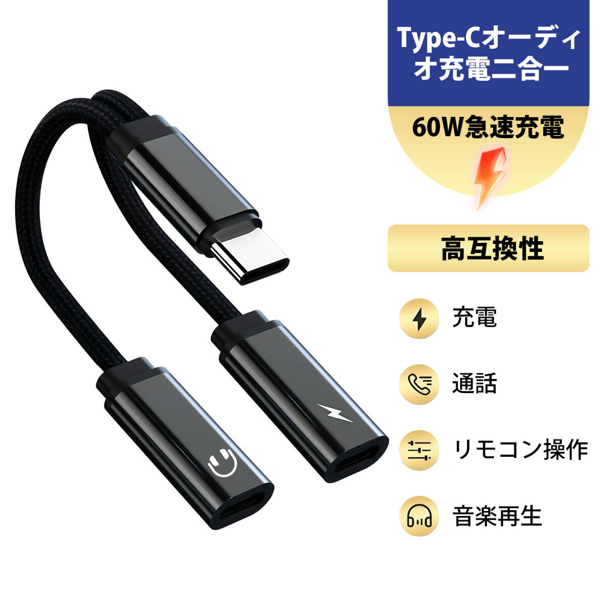- typec イヤホン 変換 タイプc イヤホン 変換 充電しながらイヤホン Type-C 変換アダプター2in1 通話 充電対応 DAC音声変換ケーブル ;J7898;
