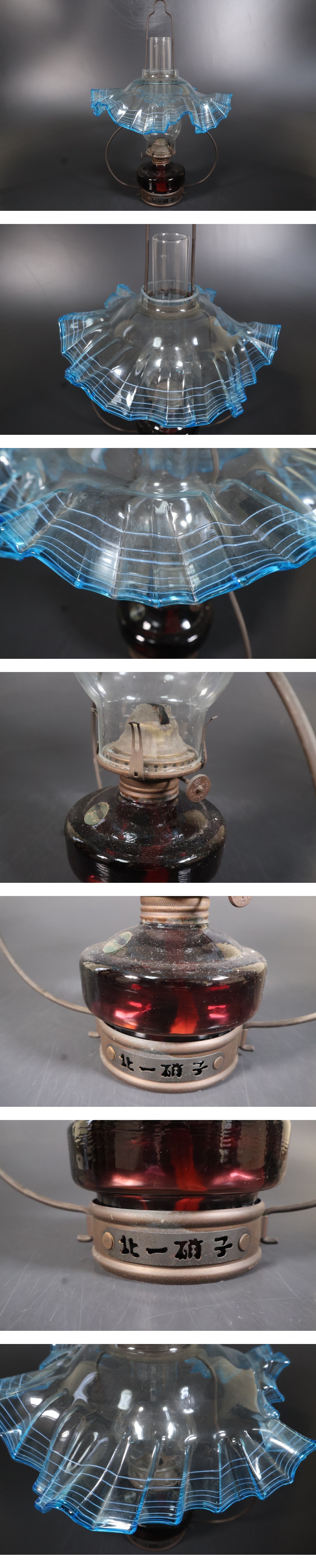 - 【小】5344K 明治~大正期 時代波ガラスランプ 吊りランプ ガラスコレクター放出品