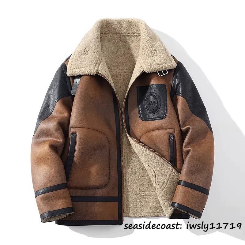 - 定価16万◆最上級 新品 メンズ ファーコート 厚手 防寒 ライダース フライトジャケット ムートンコート フライトジャケット ジャンバー 3XL