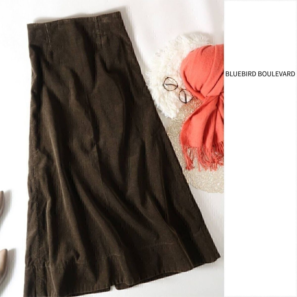 > ブルーバードブルバード BLUEBIRD BOULEVARD☆洗える バックスリット コーデュロイフレアスカート Sサイズ 日本製☆M-B 0905