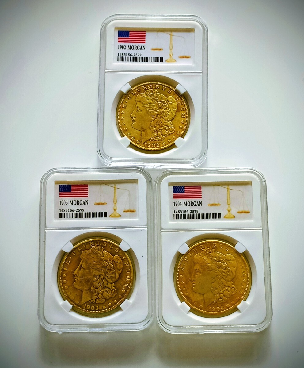 - 3枚セット1902年 1903年 1904年 モルガンダラー アメリカ1ドル リバティコイン 金貨 金塊