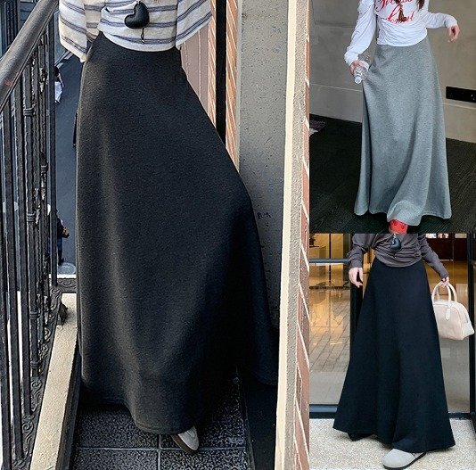 - スカート フリル 切り替え スリム 着痩せ カジュアル S ダークグレー