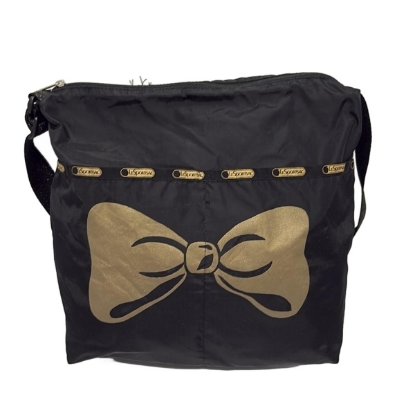 > レスポートサック LESPORTSAC ショルダーバッグ - 黒×ゴールド ラメ/リボン バッグ