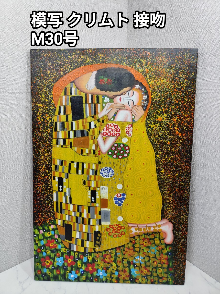 - 【模写】絵画 グスタフ・クリムト 接吻 油絵 油彩 縦91cm×横61cm M30号 アート 美術品 グスタフクリムト インテリア