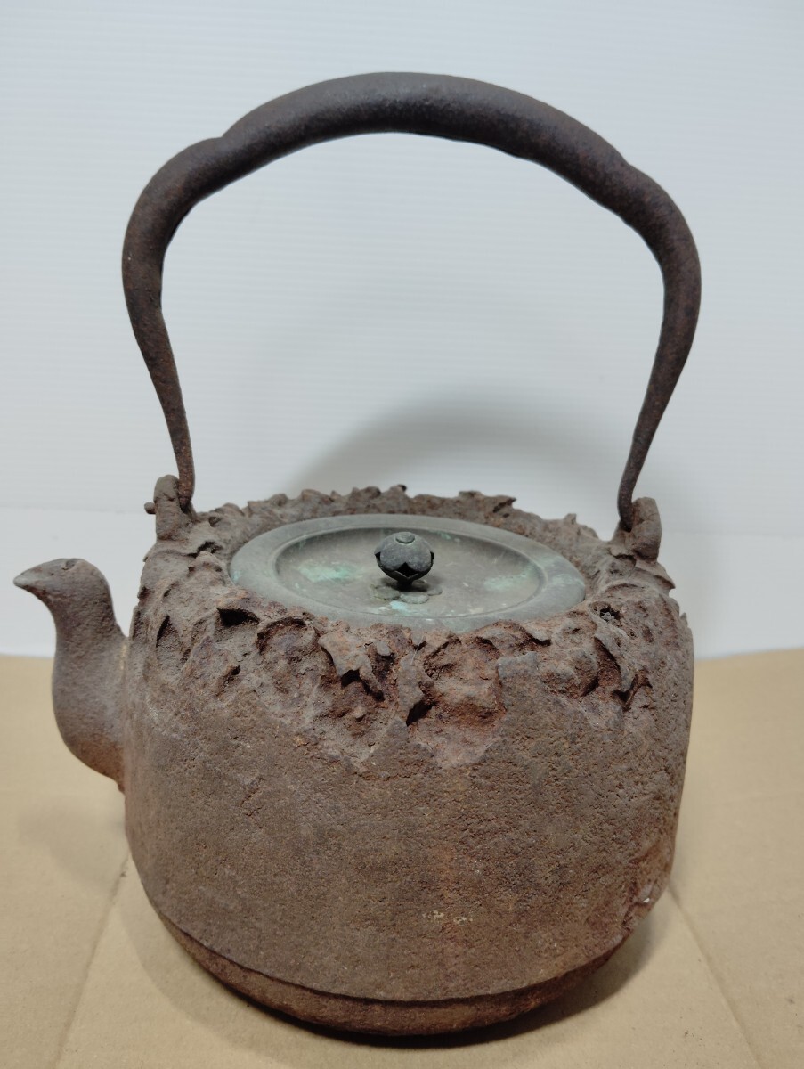 - 蔵出し品 龍文堂造 鉄瓶 岩肌模様 箱無し 骨董品 鉄器 茶道具 アンティーク