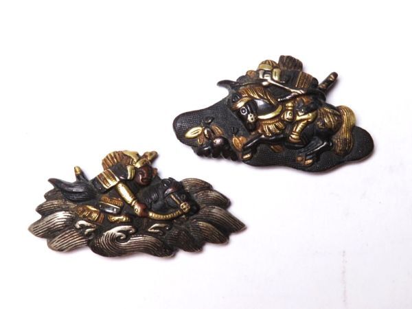 - 【12335】刀装具 江戸~明治 オリジナル 赤銅 武者 彫金 目貫(初品・買取品)