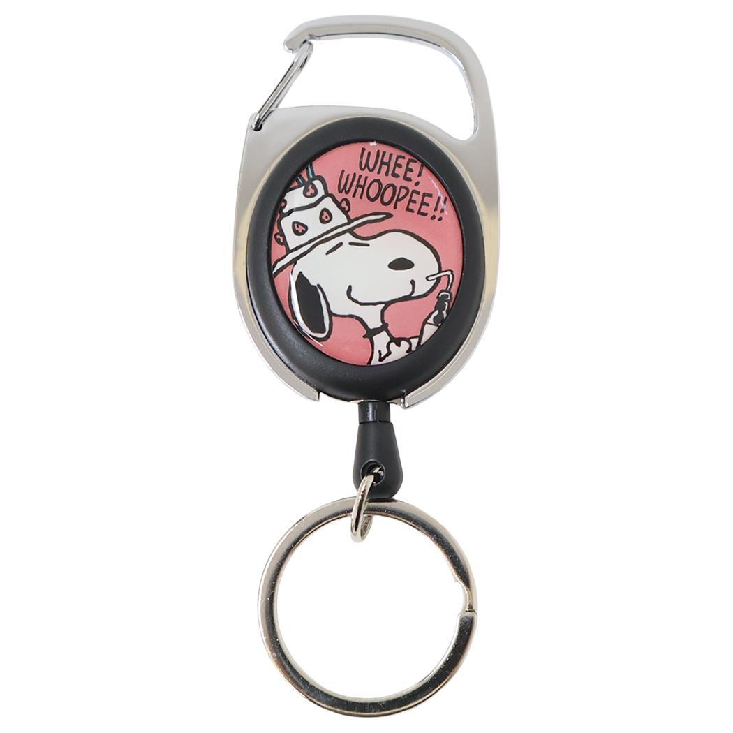 - スヌーピー リール付きキーホルダー メタリール 75th ケーキハット ピーナッツ ナカジマ 伸びるキーリング キャラクター グッ