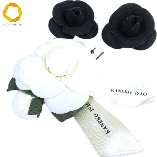- #aue カネコイサオ KANEKO ISAO コサージュ 3個 セット 白 黒 バラ 薔薇 ローズ ブローチ リボン ヴィンテージ レア 希少 [972646] k01