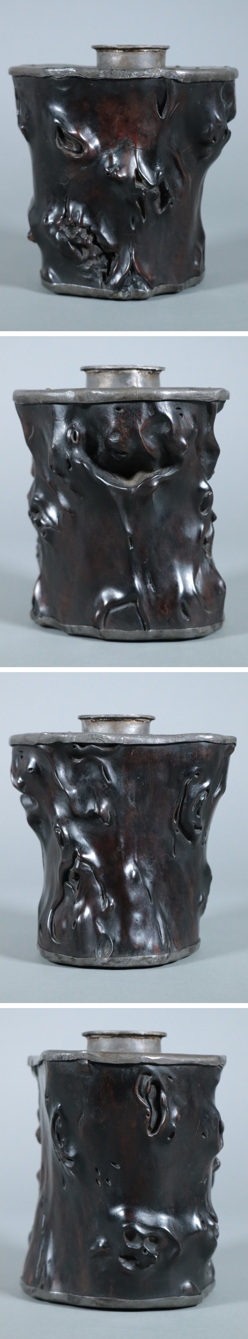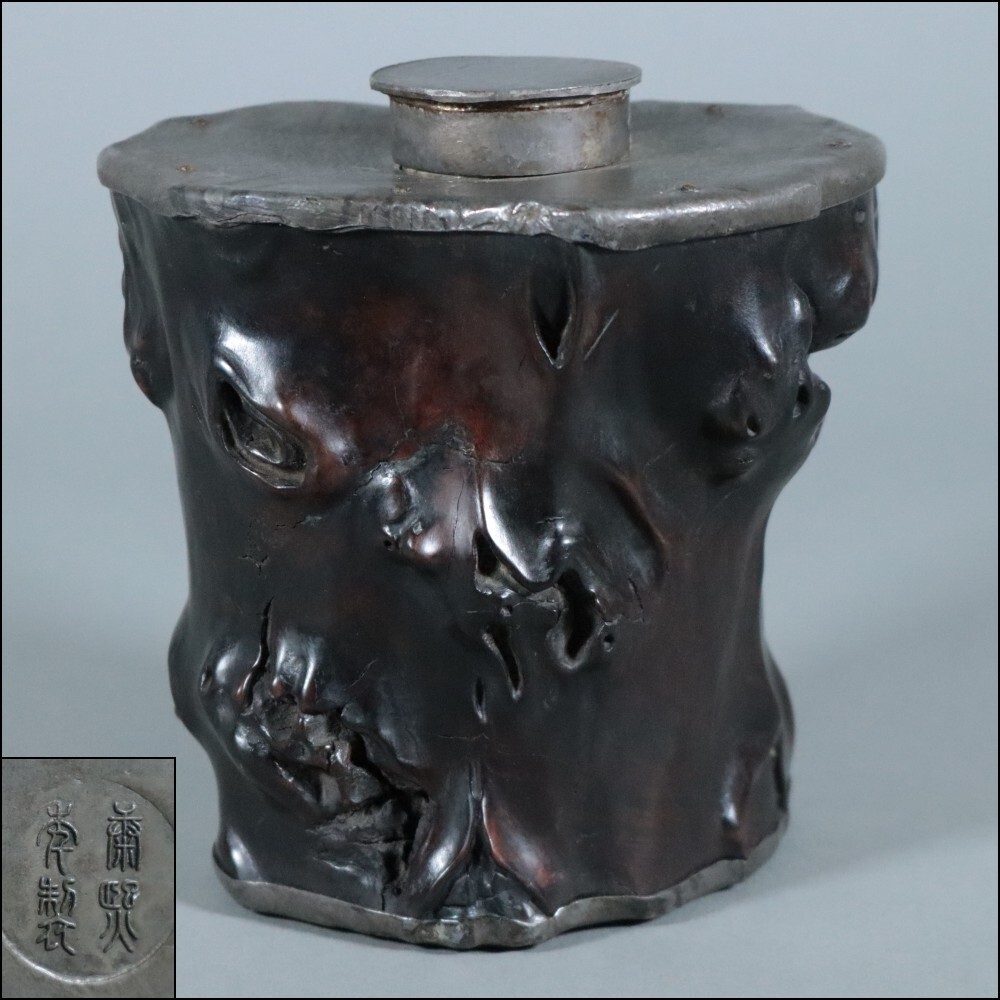 - 中国 古玩 唐木造 古唐木 唐木 紫檀 天然木 錫巻 錫製 古錫 装飾 茶入 / 在銘 / 中国美術 茶道具 茶器 茶壷 茶壺 中國 唐物 時代物 骨董品