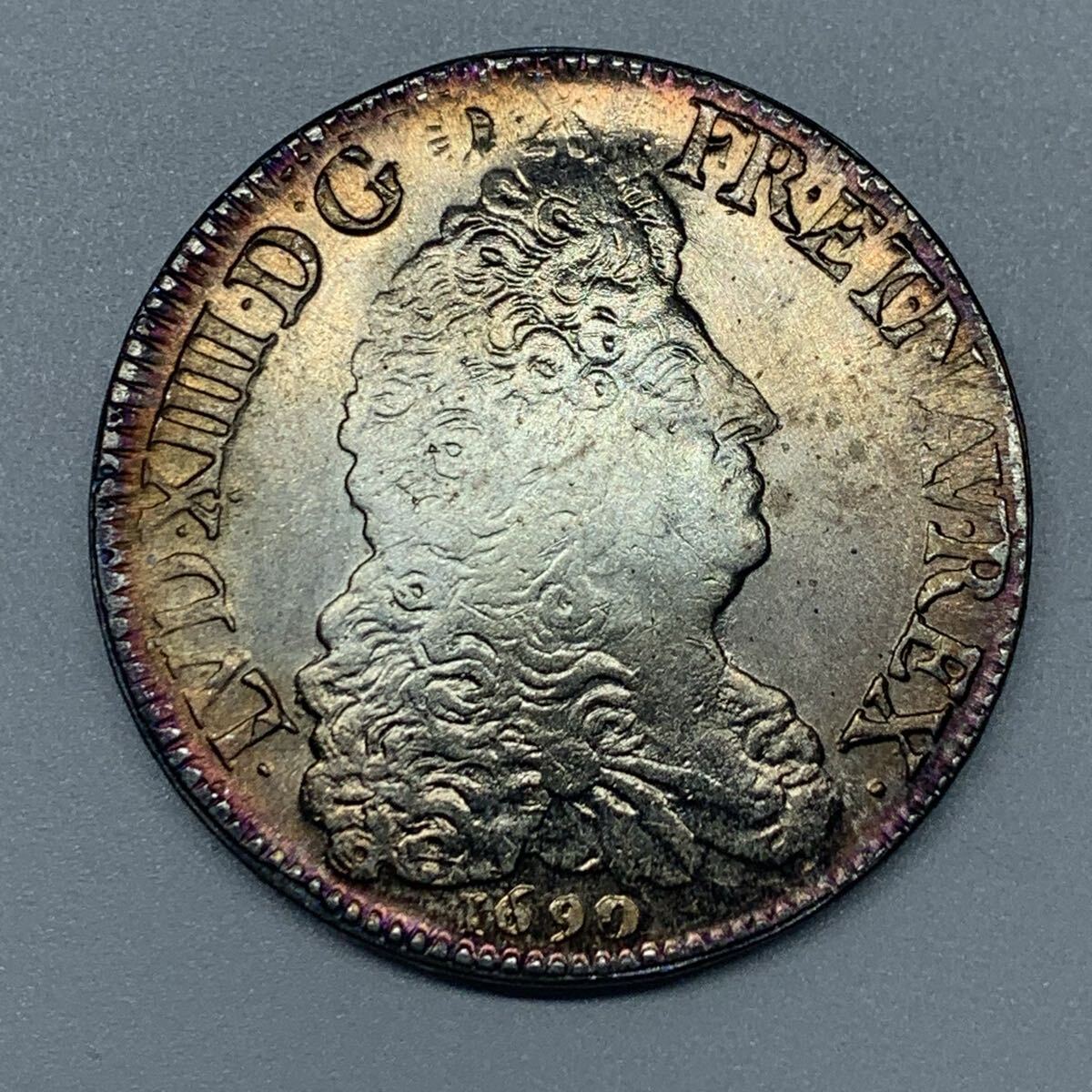 - 銀貨 1690年 ルイ14世 エキュ銀貨 ブルボン朝第3代フランス国王 太陽王 フランス王国 硬貨 古銭 貿易銀 コイン 竜 蔵品 骨董品 w158
