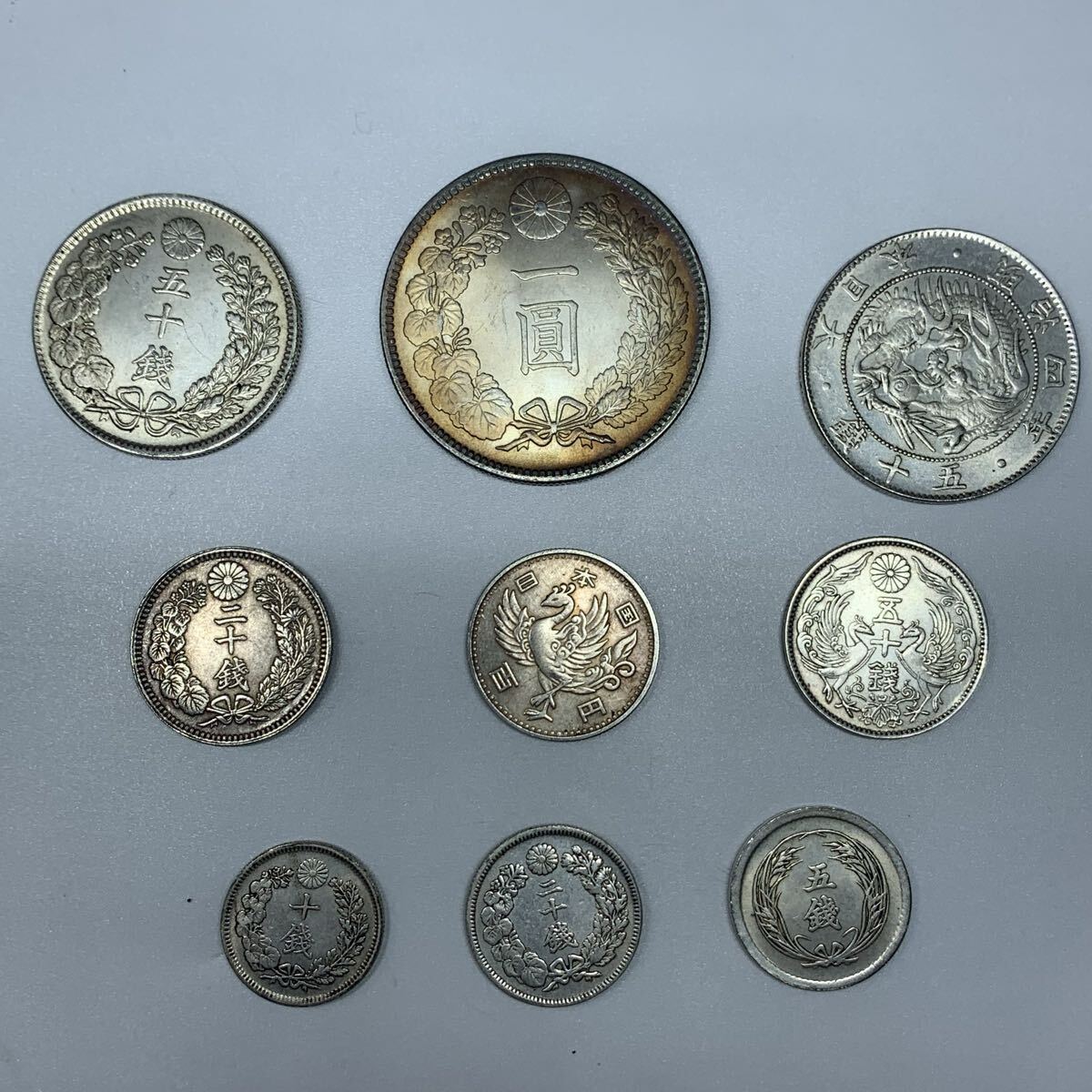- 古銭 一圓銀貨 五十銭銀貨 五銭 十銭 二十銭 10枚セット 古銭 銀貨 旧貨幣まとめ 古銭まとめて 銀貨まとめて 日本古銭 貿易銀 w174