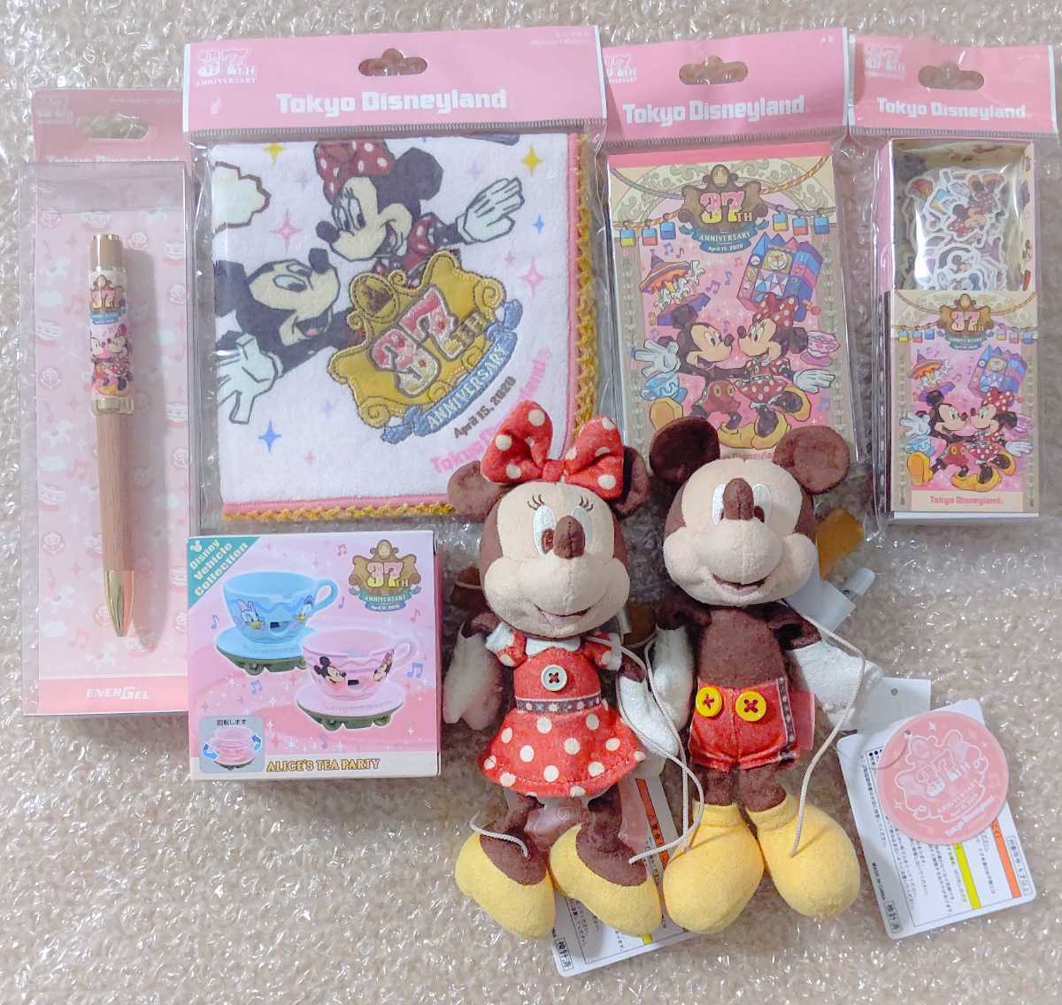 - TDR ディズニーランド 37周年 ミッキー ミニー ぬいぐるみバッジ メモ シール トミカ ボールペン ミニタオル