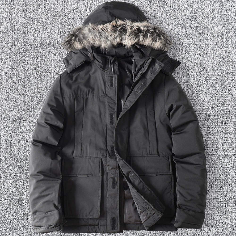 > 新品 中綿ジャケット スタンドカラー ファー付きフード パーカーコート 厚手 冬服 防寒 防風 撥水 メンズ アウター 多ポケット 黒 T9110-XL