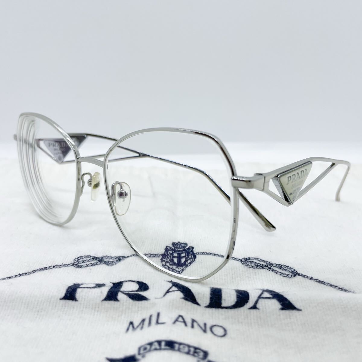- プラダ Prada 三角ロゴプレート メタルフレーム キャットアイ メガネ 眼鏡 アイウェア eyewear クリアレンズ 度付き シルバー