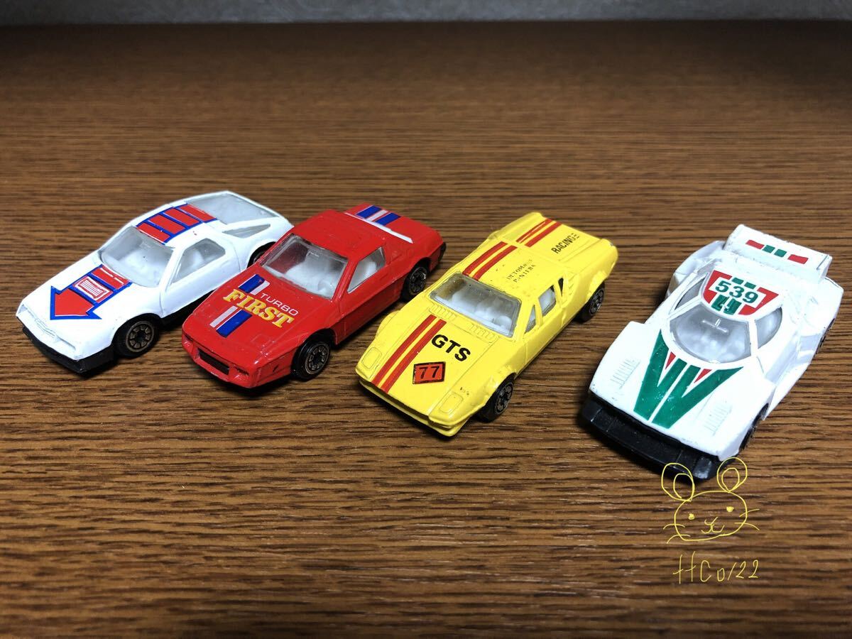 - 中古品 メーカー 車種不明 ミニカー 4台セット 【ランチア ストラトス風 , パンテーラGTS風】