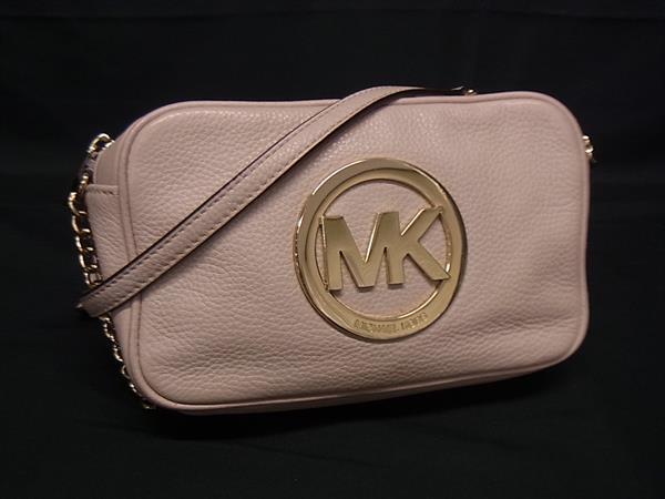 > 1円 MICHAEL KORS マイケルコース レザー クロスボディ ショルダーバッグ ポシェット 斜め掛け レディース ベージュ系×ゴールド系 GB2692