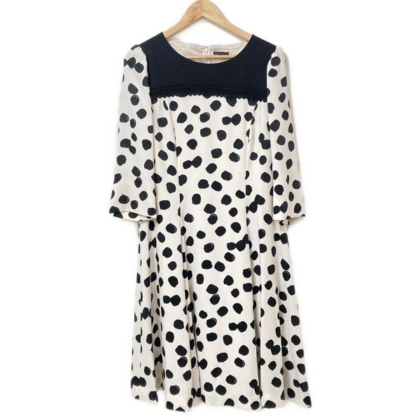 > トゥービーシック TO BE CHIC サイズ44 L - 白×黒 レディース クルーネック/七分袖/ひざ丈/ドット柄/レース 美品 ワンピース