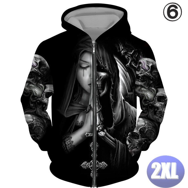 - フード付き ドクロパーカー ジップアップ カラー6 2XL トレーナー アウター 防寒 n717