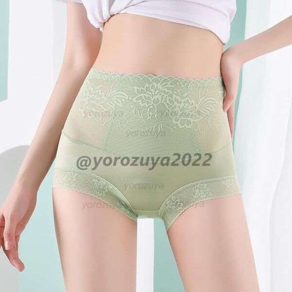- 164-52-8 ハイウエスト フルバック 光沢 セクシー ショーツ【グリーンXL】レディース 女性 下着 新品 レース エロ パンツ ランジェリー.1