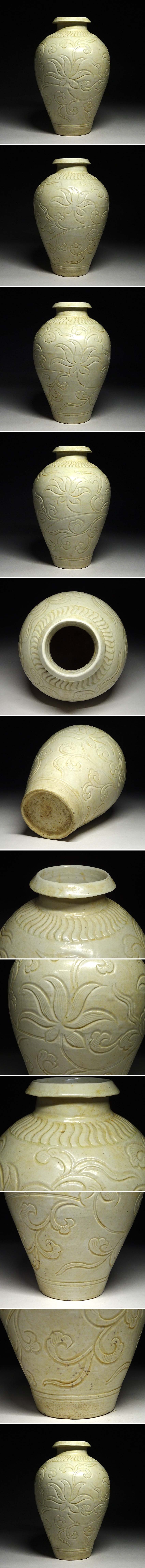 - 緑屋t■ 中国古玩 白磁 陰刻 花瓶 壺 磁州窯 唐物 時代物 i9/10-6486/6-3#80