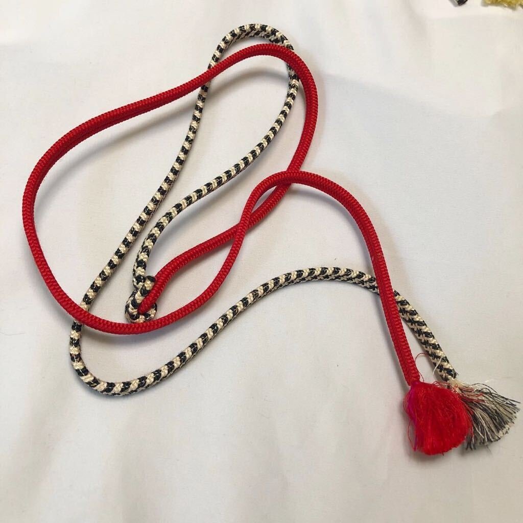 - 帯締め 帯留め 帯紐 帯留 帯締 和装小物 着物 帯紐 和服 和装 ⑦ 赤 白 黒 ストライプ 縞 レッド系 【中古】
