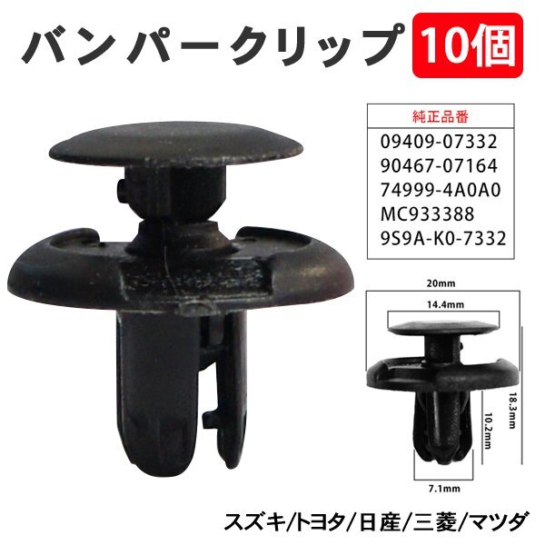 > ☆ 10個 バンパークリップ リベット スズキ マツダ トヨタ ダイハツ 三菱 日産 バンパー グリル 09409-07332 【CP3-10】
