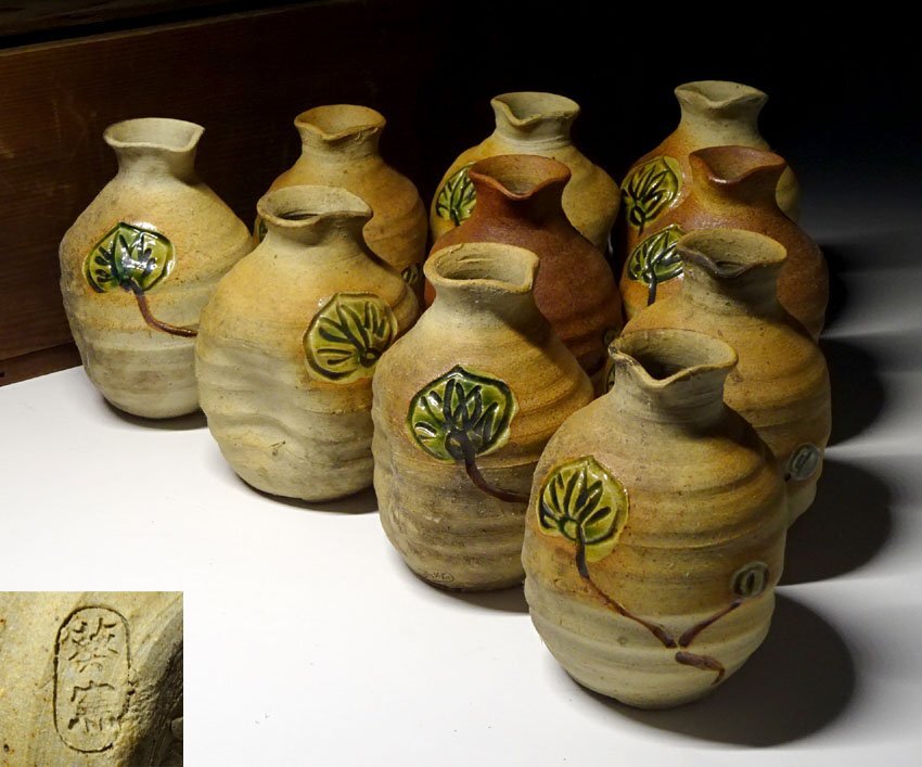 - 緑屋c■ 時代物 葵窯 徳利 10点 木箱 徳川家葵窯 古陶磁 i9/10-6534/3-4#100