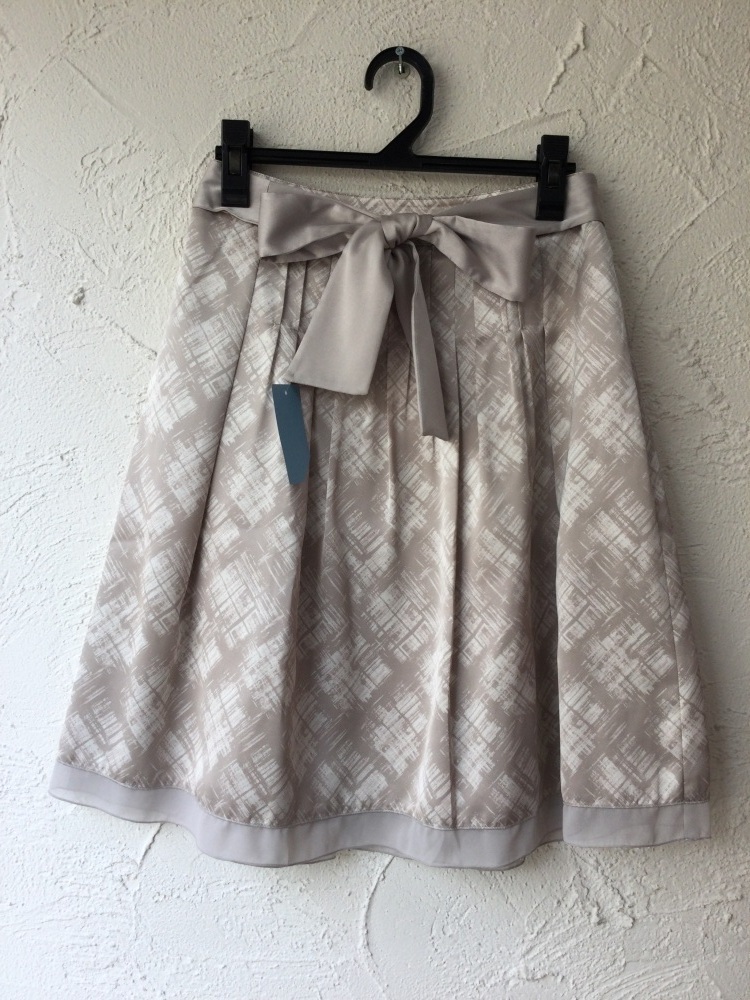 - ナチュラルビューティー グレージュ系チェックスカート サイズ36