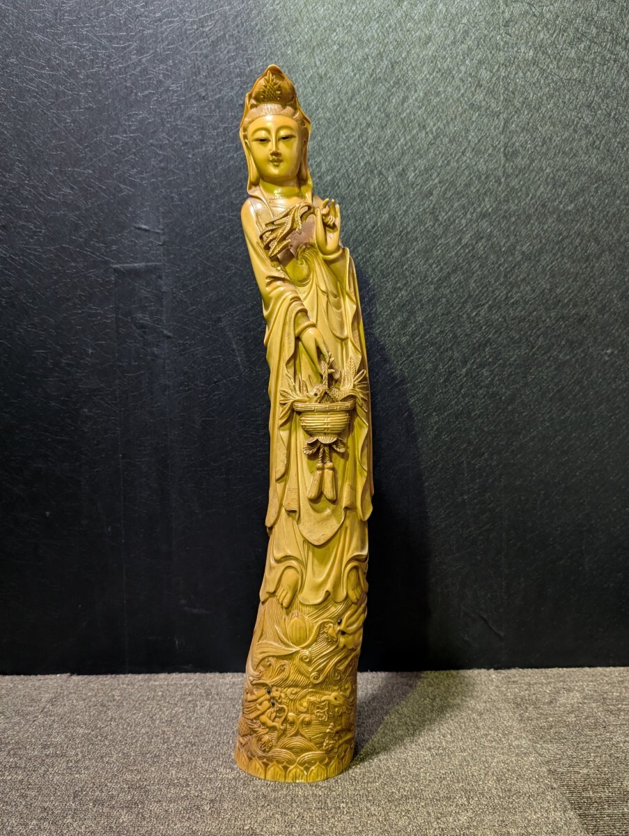 - 龍上観音 仏像 観音像 龍乗観音 龍観音 置物 特殊白材