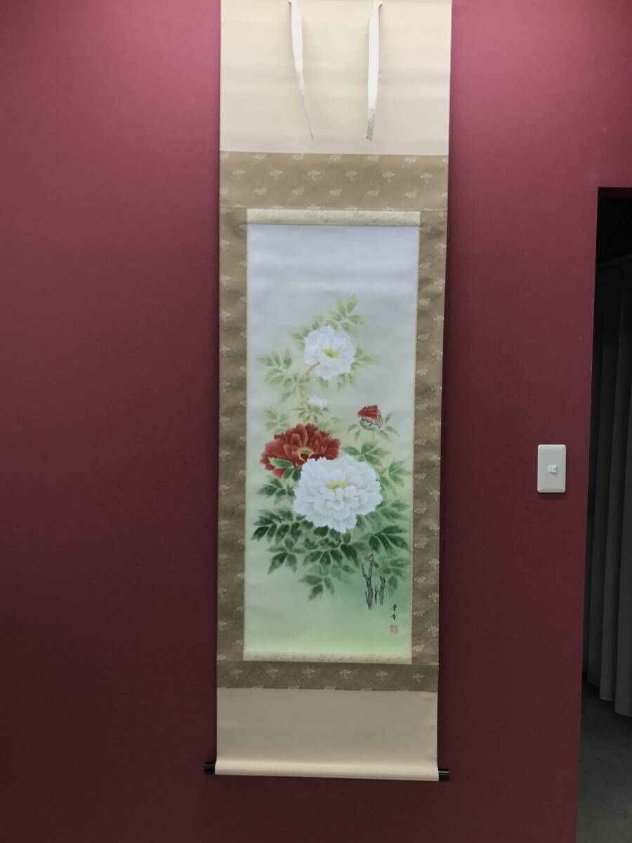 - HG8964 【真作】掛軸 平松豊香「牡丹」絹本 花鳥図 絵画 昭和 日本画家 在銘 落款 共箱