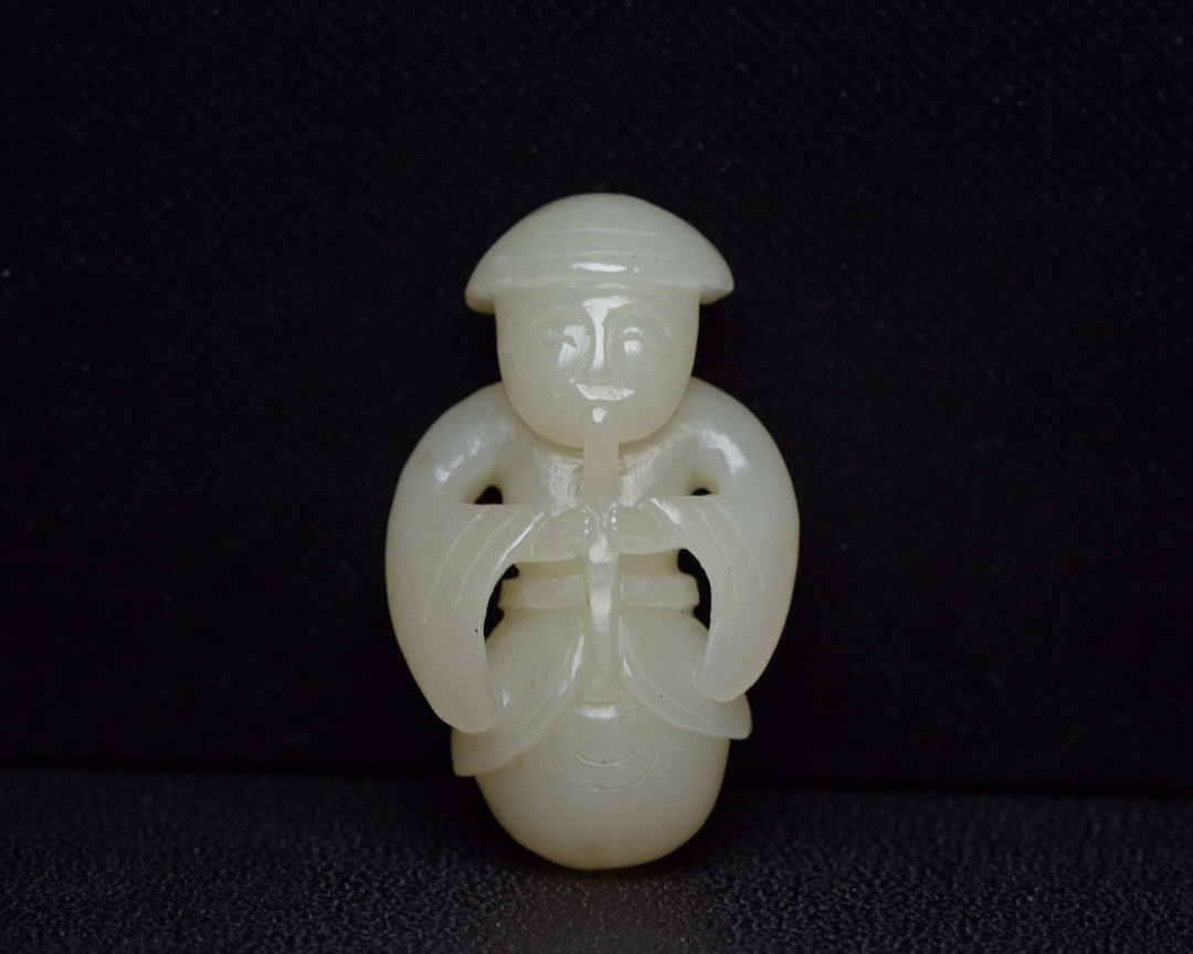 - 旧蔵 和田玉彫 人 根付 中国古玩 骨董品 時代物 稀少唐物