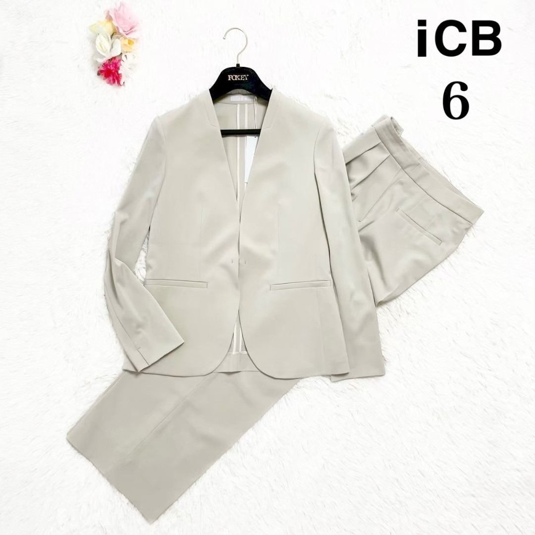 - iCB Fied ファイド ワイド パンツ スーツ 上下 2点 セットアップ 未使用 タグ付き グレージュ 6 ノーカラー ウォッシャブル 洗える