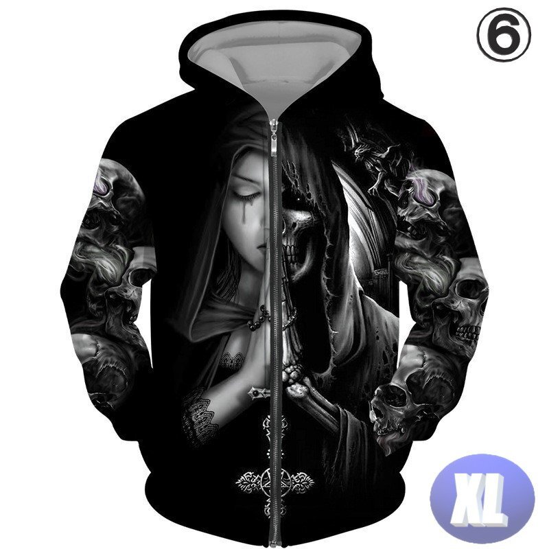 - フード付き ドクロパーカー ジップアップ カラー6 XL トレーナー アウター 防寒 n717