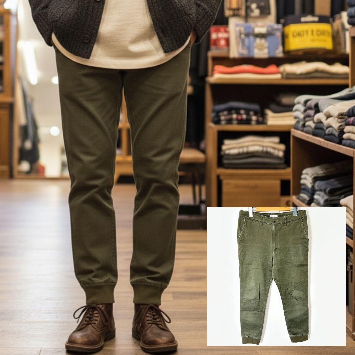 > 古着コーデに◎【BROWNY STANDARD】ブラウニースタンダード テーパードパンツ コットン 綿 ストレッチ カーキ メンズL/Y37845YY