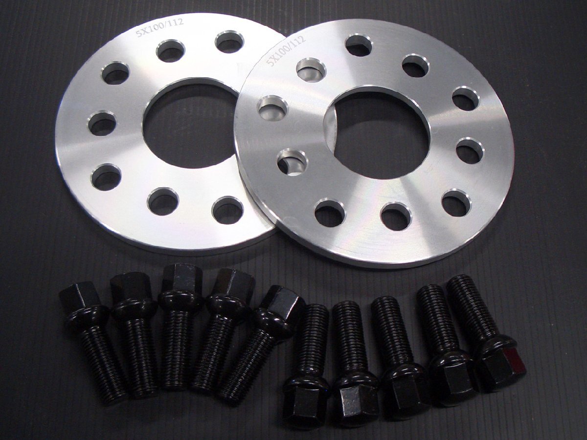 > AUDI アウディ 57.1mmハブ TT 2006~ ブラックボルト10本(長さ変更可)&スペーサー PCD112 ハブ無し7mm厚(ハブ高12mm以上に適合)