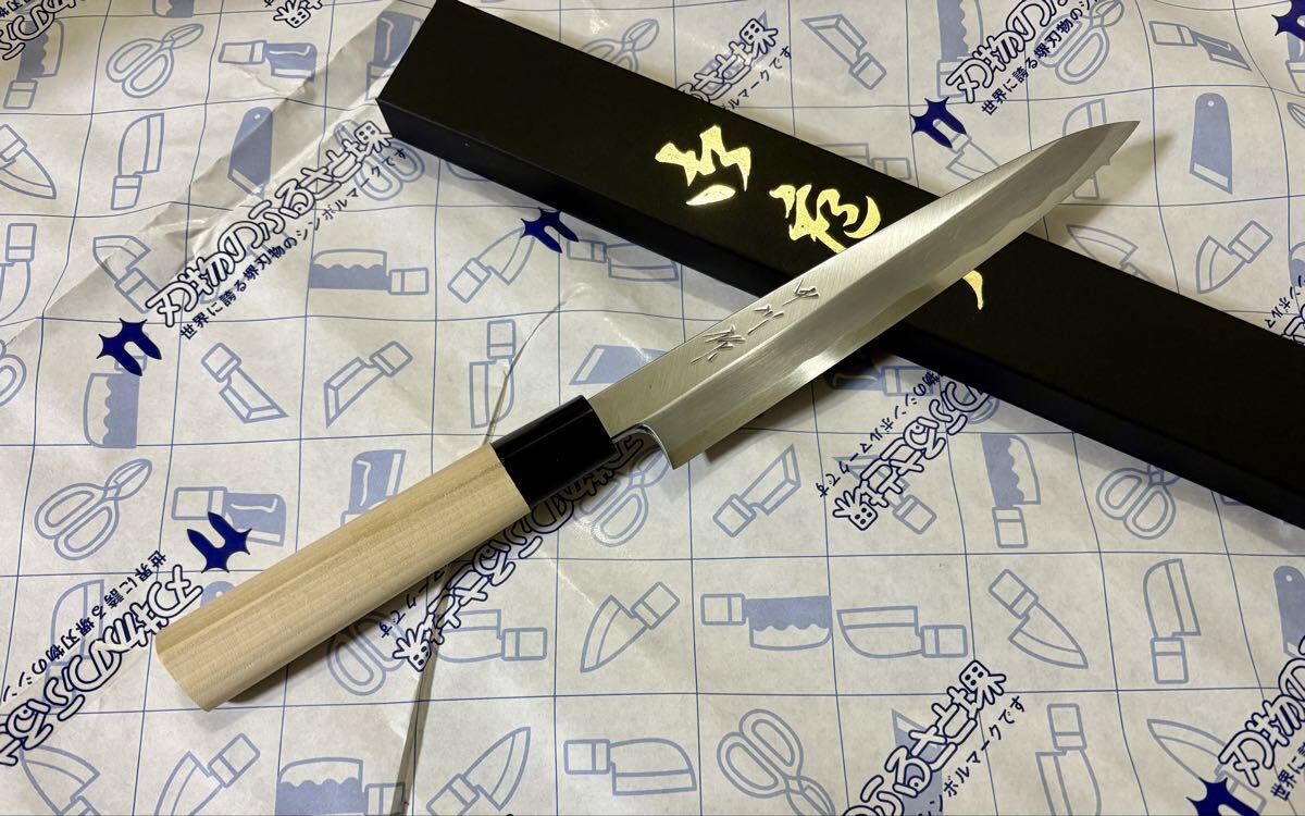 > 堺打刃物 中川作 柳刃 6寸 180mm 包丁 和ペティ 和包丁 刺身包丁 調理器具 白鋼 白ニ 釣り 未使用