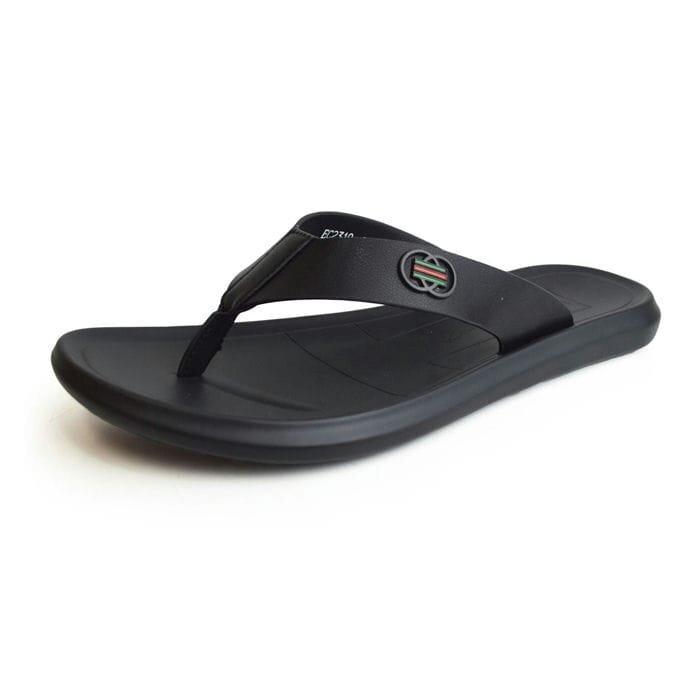 > 新品■25~25.5cm メンズ サンダル トングサンダル 柔らか 合皮 マイクロファイバーレザー 黒 きれいめ ビーサン 防滑 軽量【エコ配送】
