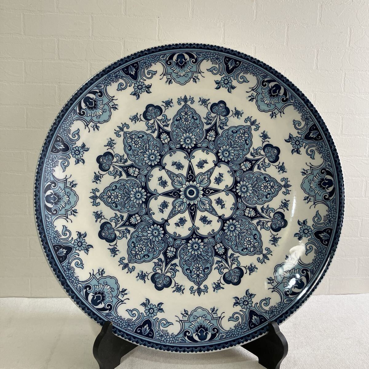 - 【超特大 46cm】ノリタケ 特撰 大皿 青絵アラベスク NT刻印 特大飾り皿 特注品 わずかに貫入あり 希少サイズ レトロ ヴィンテージ