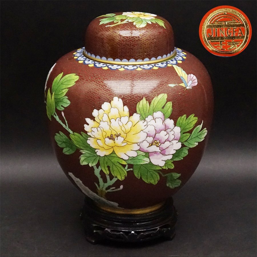 > 中国美術 中国古玩 唐物 景泰藍 内底七宝 茶壷 花器 年代物 工芸 時代 骨董 色絵飾瓶 煎茶道具 茶道具 唐木台座付 古美術品