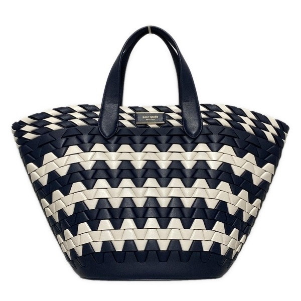 - ケイトスペード Kate spade トートバッグ KB296 ジグザグ ウーブンレザー スモール トート レザー ネイビー×白 編み込み バッグ