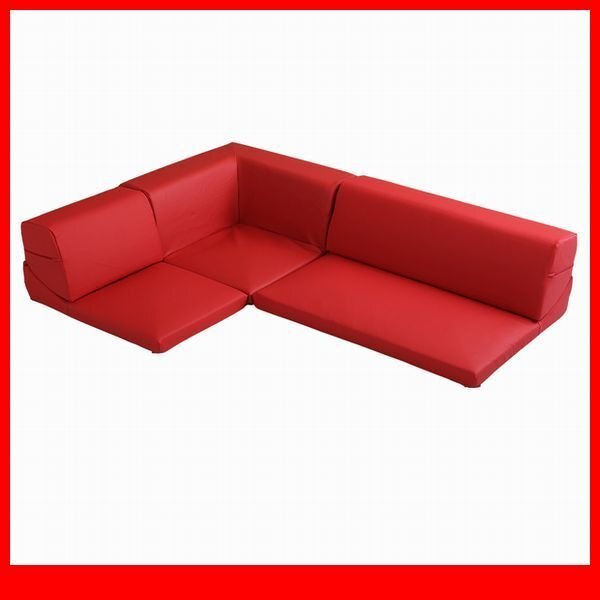 > ソファ★組み替え自由なフロアソファ 3人掛け ロータイプ/リクライニング ローテーブル こたつで/日本製 合皮 PVC/レッド/新品 特価/a4