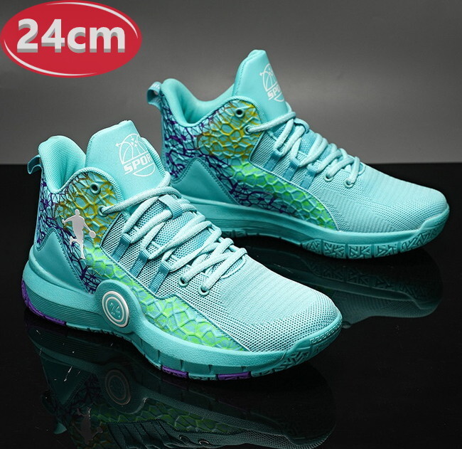 > 1スタ ☆ メンズ スニーカー 24.0cm ライトブルー 靴 シューズ 防滑 バスケットシューズ 通勤 通学 旅行 【126】